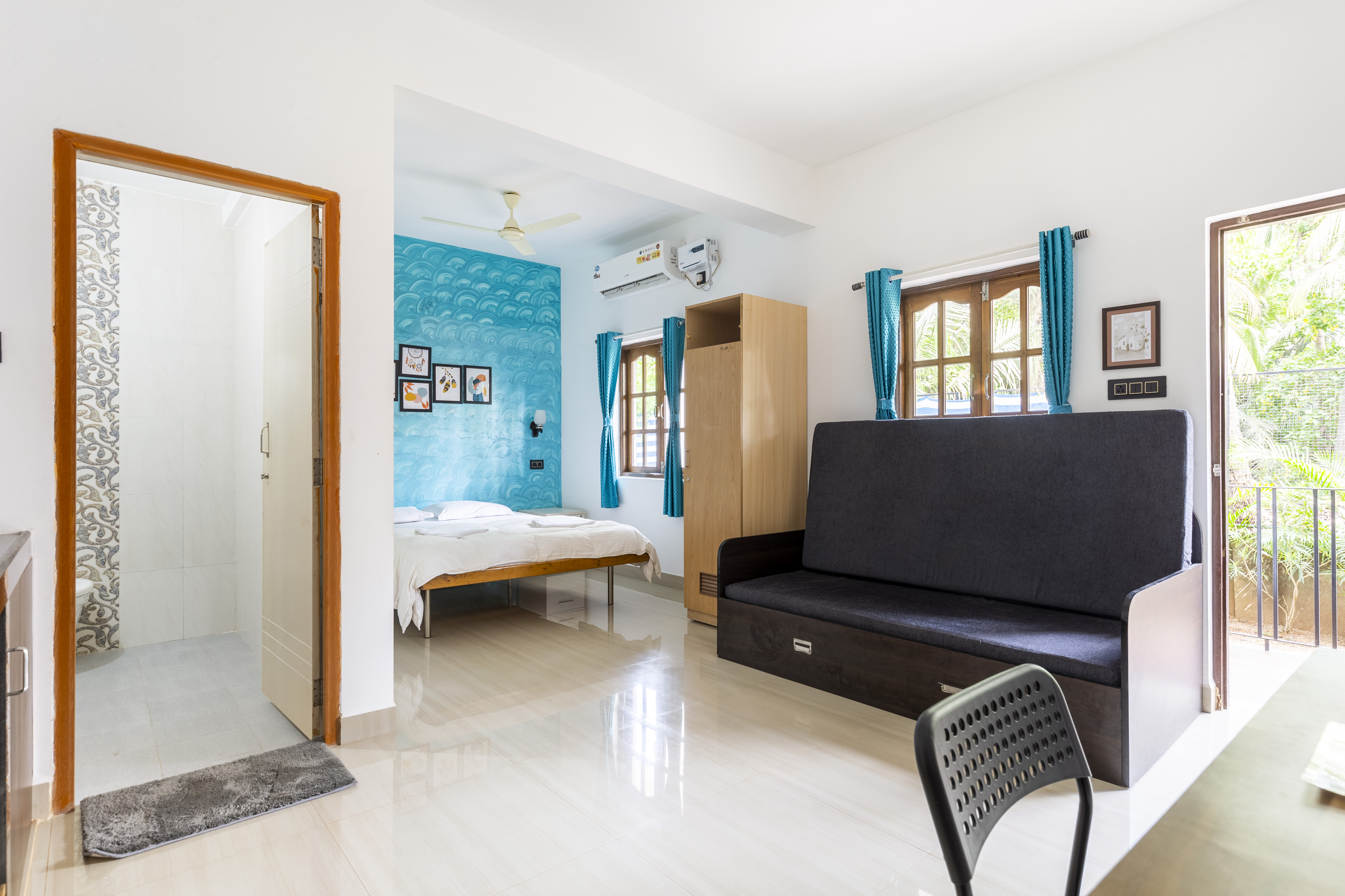Tucked away in a quiet lane in Anjuna, Casa De Mor is the perfect oasis for you to relax, enjoy, and work. With a co-working lounge in the premises, work is not just limited to your room. Surrounded by coconut and mango trees, the villa with 6 rooms and 12 beds, is ideal for large groups, including backpackers, couples, office workers, and families with kids. Being in the heart of Anjuna also means having access to the beach, which is just a few minutes walk, popular clubs and restaurants, and all those exotic places brimming with fun.