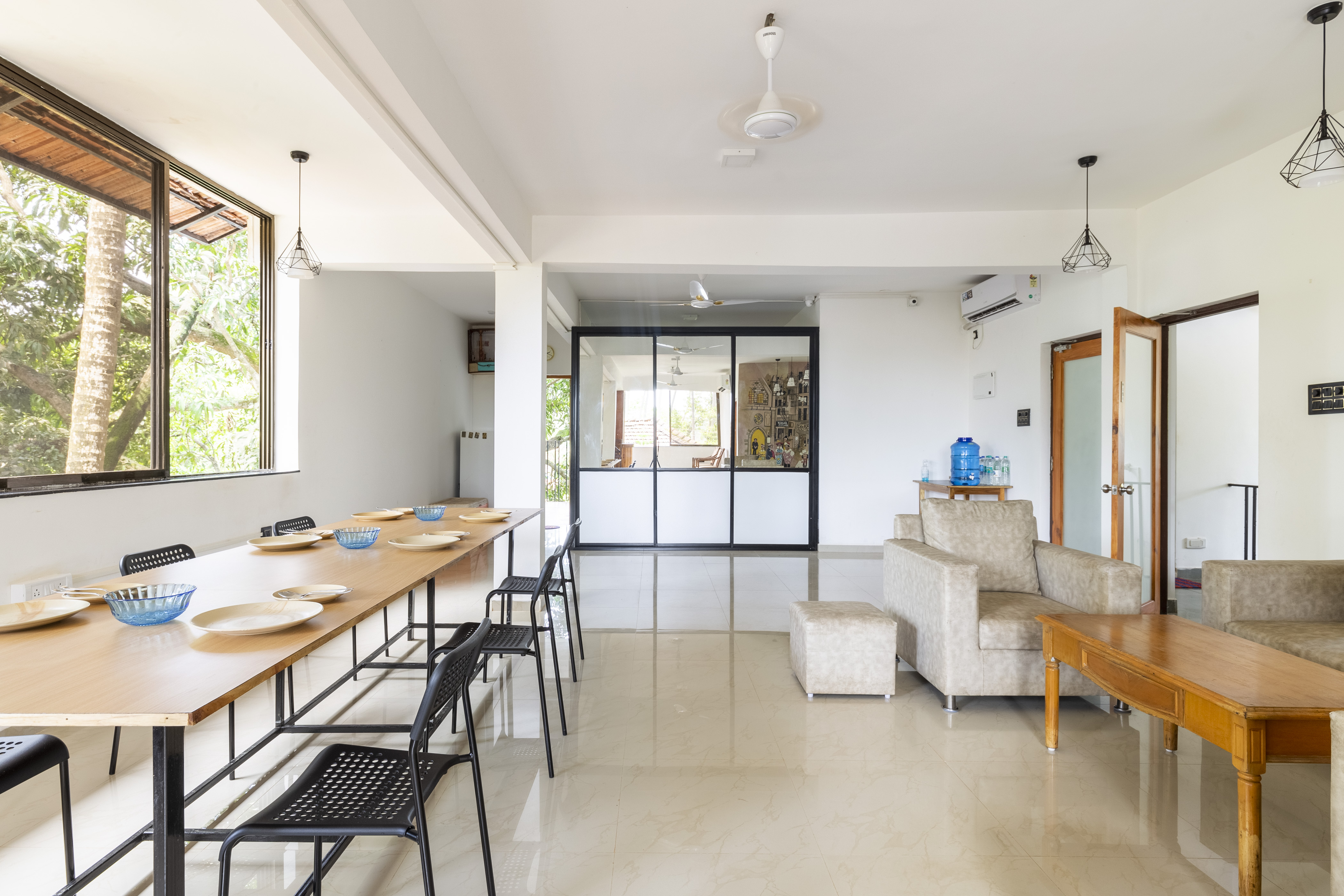 Step into our living room, where Mario Miranda's whimsical art dances on the walls while cozy corners invite endless conversations. This place is versatile. Whether you're curling up with a book, catching up on work, enjoying a meal, or watching the sunset, our living room has this wonderful way of becoming exactly what you need it to be.
